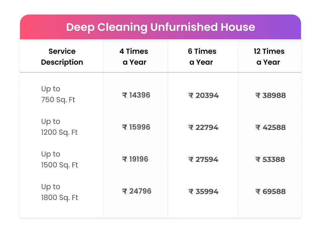 For our deep cleaning service in Bangalore, you can also contact our customer support team to alter or tailor the plans according to your surface area and needs.